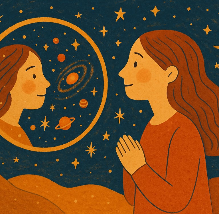 Abrirse a la posibilidad de que todo lo existente - materia, energía, tiempo, conciencia- está vinculado, nos permite percibir un universo que se refleja a sí mismo. No somos espectadores aislados, participamos de una danza universal. Cada latido personal se sincroniza con los ritmos de lo infinito.